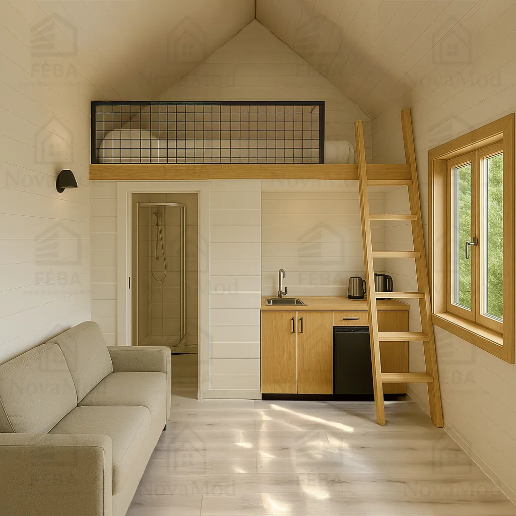 Meglepően kényelmes és modern. A modulházaink rendesen szigeteltek, fűthetők, hűthetők, prémium anyagokból készülnek, és teljesen felszerelhetők fürdőszobával, konyhával, hálóval.